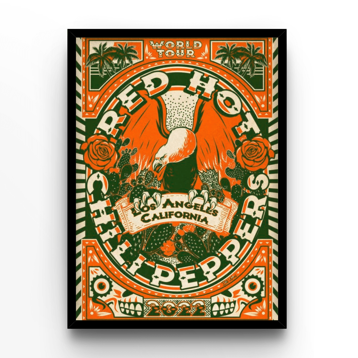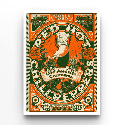 - Diseño Impactante: Con imágenes vibrantes y tipografía audaz, este Póster captura la esencia del estilo de vida californiano y el inconfundible estilo de los Red Hot Chili Peppers.