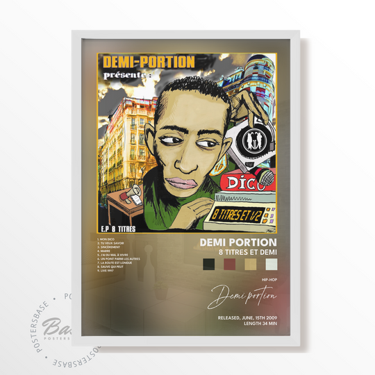 Zanurz się w świat Demi Portion i podkręć vibe swojej przestrzeni tym oszałamiającym 8 Titres et Demi Plakat już dziś!