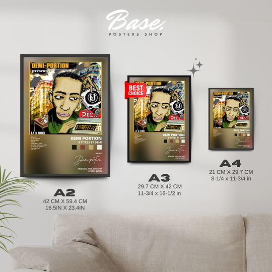 Przeżyj artystyczną podróż Demi Portion z ekskluzywnym 8 Titres et Demi Plakat. Ten hipnotyzujący kawałek sztuki na ścianę nie tylko pokazuje unikalną esencję muzyki Demi Portion, ale też dodaje Twojej przestrzeni odrobinę elegancji.